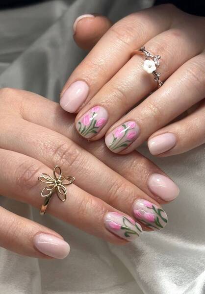 Shade “Violet” and Floral Hand-drawn Nail Art